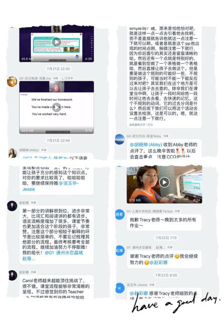 进入培训期,我们的安排是早九晚六+个体点评,晚21:00-24:00是导师与学员的黄金聚焦时间段。当结果是收获时,一路伴随的辛苦就是美景,一路努力的付出都是幸福。这种奋斗的精神是传递亦是馈赠,每次培训结束都会涌现出一批优秀的老师。而优秀一定意味着比他人付出得要多。很多参训老师在校区正常上课的同时在参加培训,提交培训作业,值得尊敬。